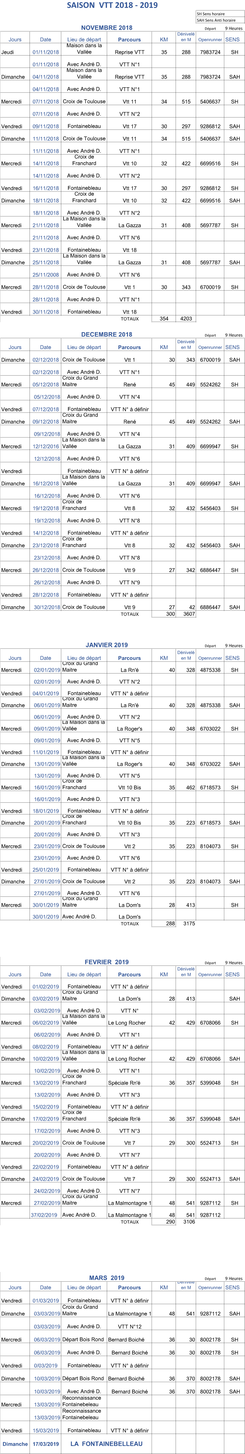 NB: André Deguelle prends en charge les groupe 2, 3 et débutants en VTT