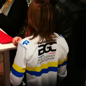 Les équipements que vous allez découvrir, conçu dans des matières très performantes, sont d’un aspect assez différent de ce que nous connaissions. Mais les couleurs bleu et jaune du BGC y figurent toujours. Voici les nouveaux maillots du BGC présentés par Marion, Karyn, Dominique et Christophe. Je précise que nous devons leur conception à Marion DUDEBOUT et à Christophe DESIRE que nous remercions pour ce beau travail.